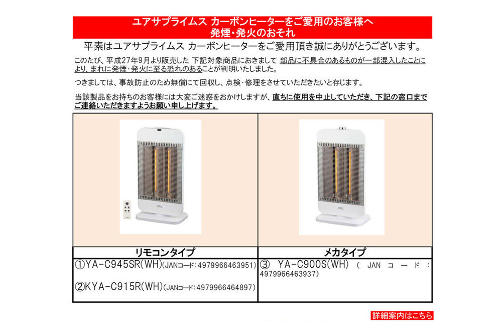 壁掛扇風機についての回収・交換のお知らせ